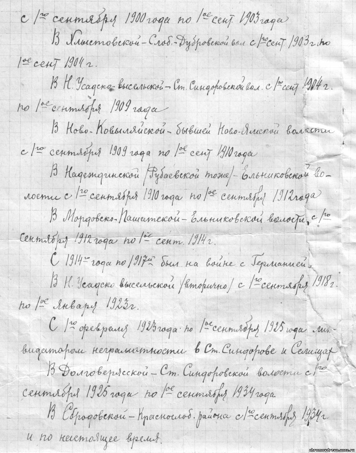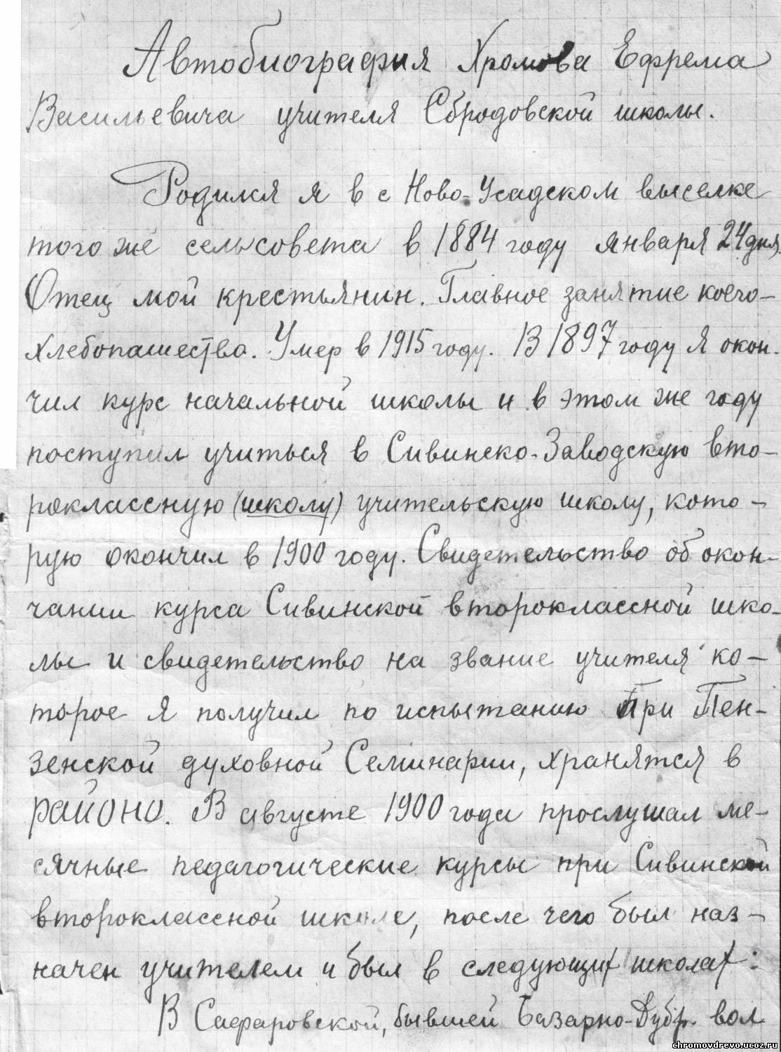 Ефрем Васильевич, автобиография с перечнем мест работы (фотодокумент)